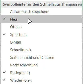 3. Wähle den Eintrag Aus Symbolleiste für den Schnellzugriff entfernen. Die Schaltfläche Neu wird wieder aus der Symbolleiste entfernt.
