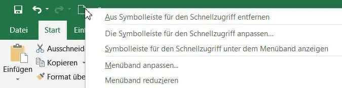 (Du kannst auch den Mauszeiger auf die Symbolleiste für den Schnellzugriff platzieren, die rechte Maustaste drücken und den Befehl wählen.)