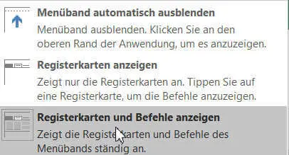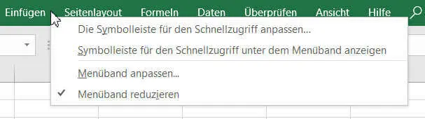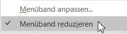 3. Wähle den Befehl Menüband reduzieren bzw. minimieren.