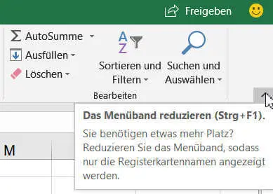 7. Ein Klick auf die Schaltfläche oben rechts und das Menüband wird auf die einzelnen Namen der Registerkarten reduziert.